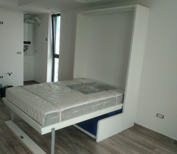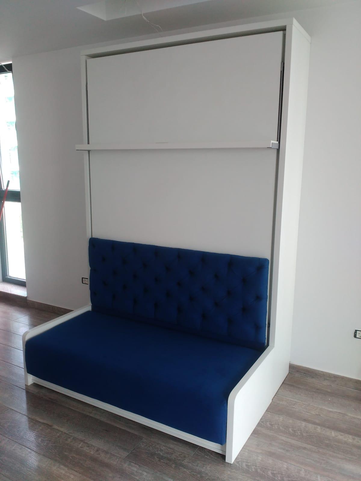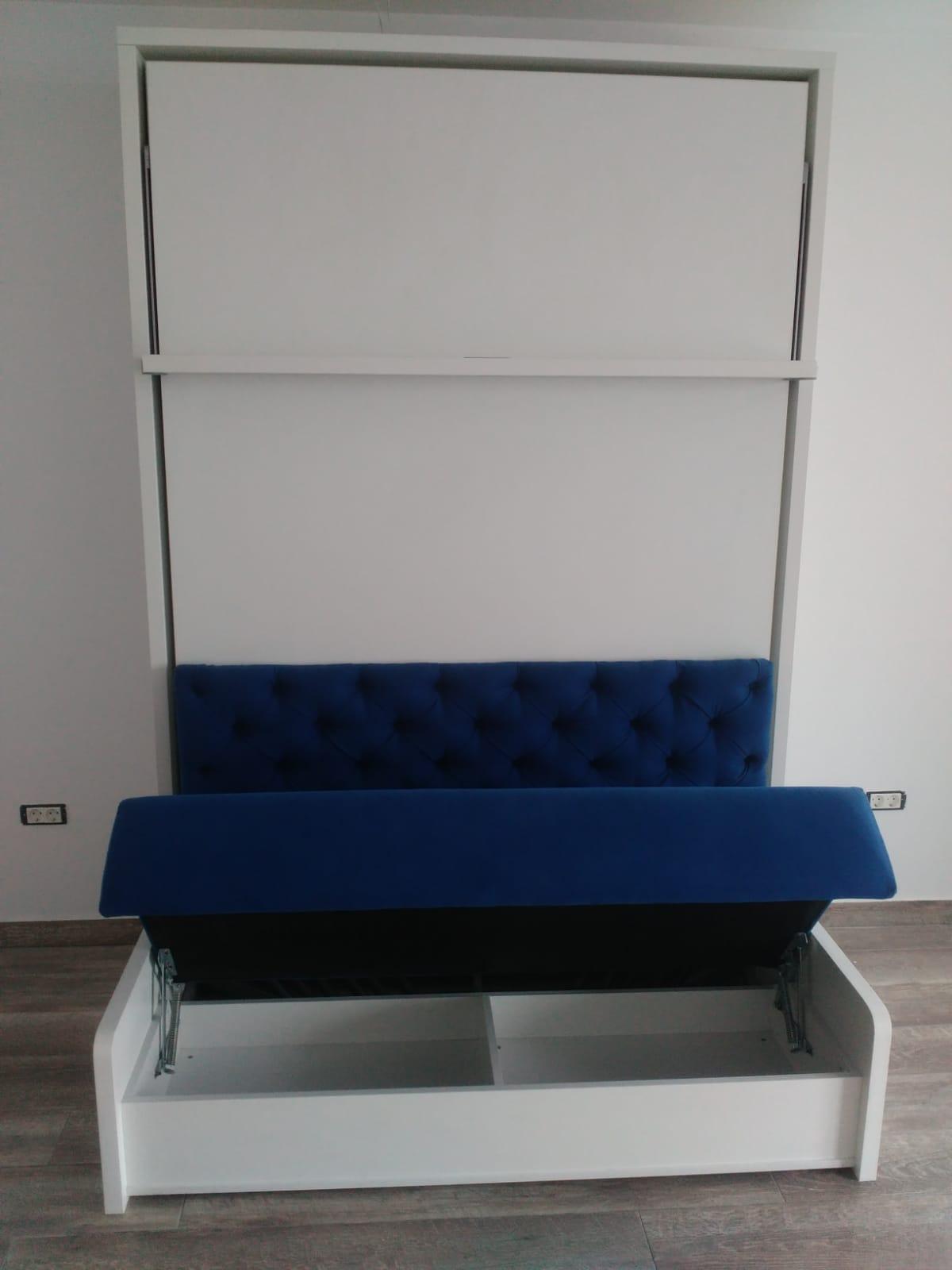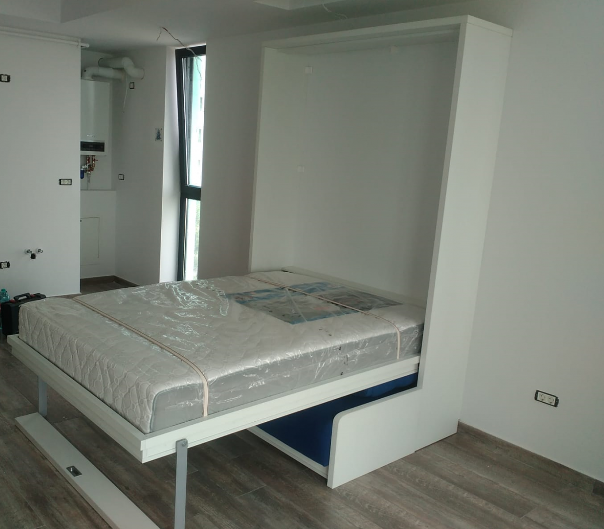 Acesta este modelul de baza pentru paturile rabatabile fabricate de noi. Se poate executa si pat simplu fara canapea. Pentru executia acestor paturi folosim sisteme de actionare cu amortizoare pneumatice sau sistem cu arcuri. Folosim toate culorile existente din paletarele de PAL si MDF.