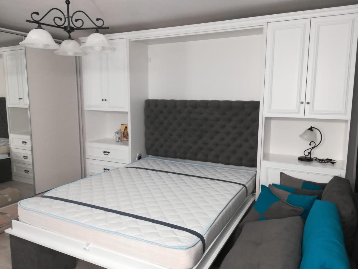 Modelul 05 este format din pat rabatabil pentru saltea de 160x200cm, cu coltar si dulapuri stanga dreapta. Carcasa corpurilor (partea din interior) este confectionata din PAL melaminat de 18mm, iar partile frontale (ce este la vedere) sunt confectionate din MDF Infoliat cu model. In functie de necesitatile dumnneavoastra se poate construi integral din PAL pe orice culoare din paletarele existente. Paturile se fac doar la comanda, pentru orice dimensiune de saltea. Pentru mai multe detalii, nu ezitati sa ne contactati !