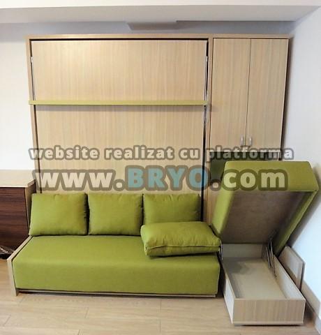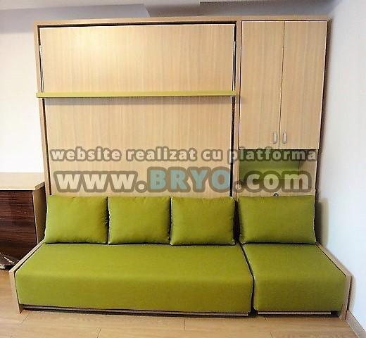 Pat rabatabil cu deschidere pe verticala , corp lateral si canapea. Particularitatea acestei canapele o constitue corpul mobil care permite transformarea canapelei in coltar.. Acest ansamblu a fost creat pentru mobilarea unei garsoniere.