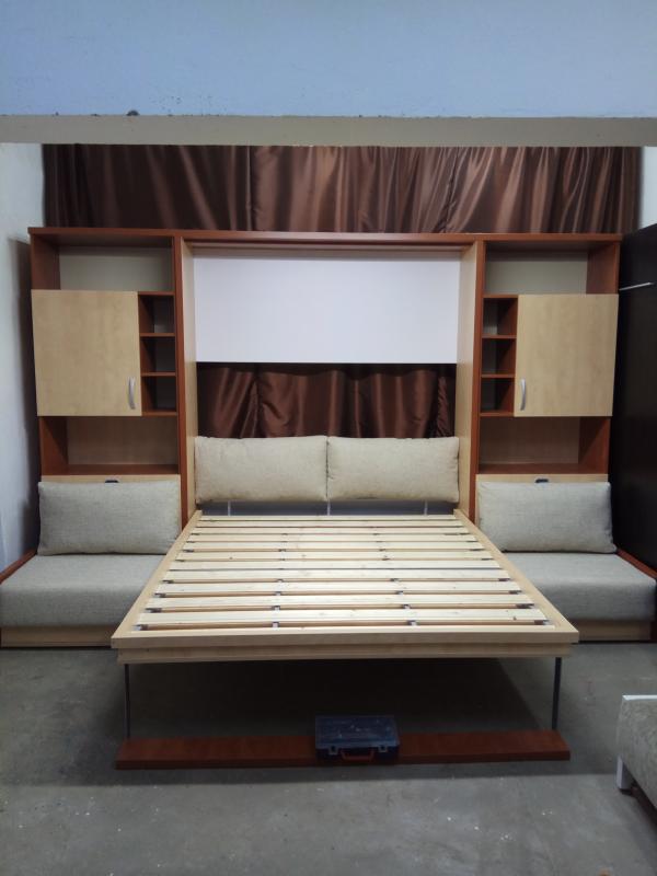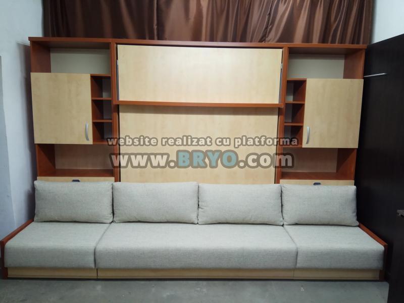 Asamblul este format din pat rabatabil cu deschidere pe verticala , doua corpuri laterale si canapea pe toata lungimea ansamblului.